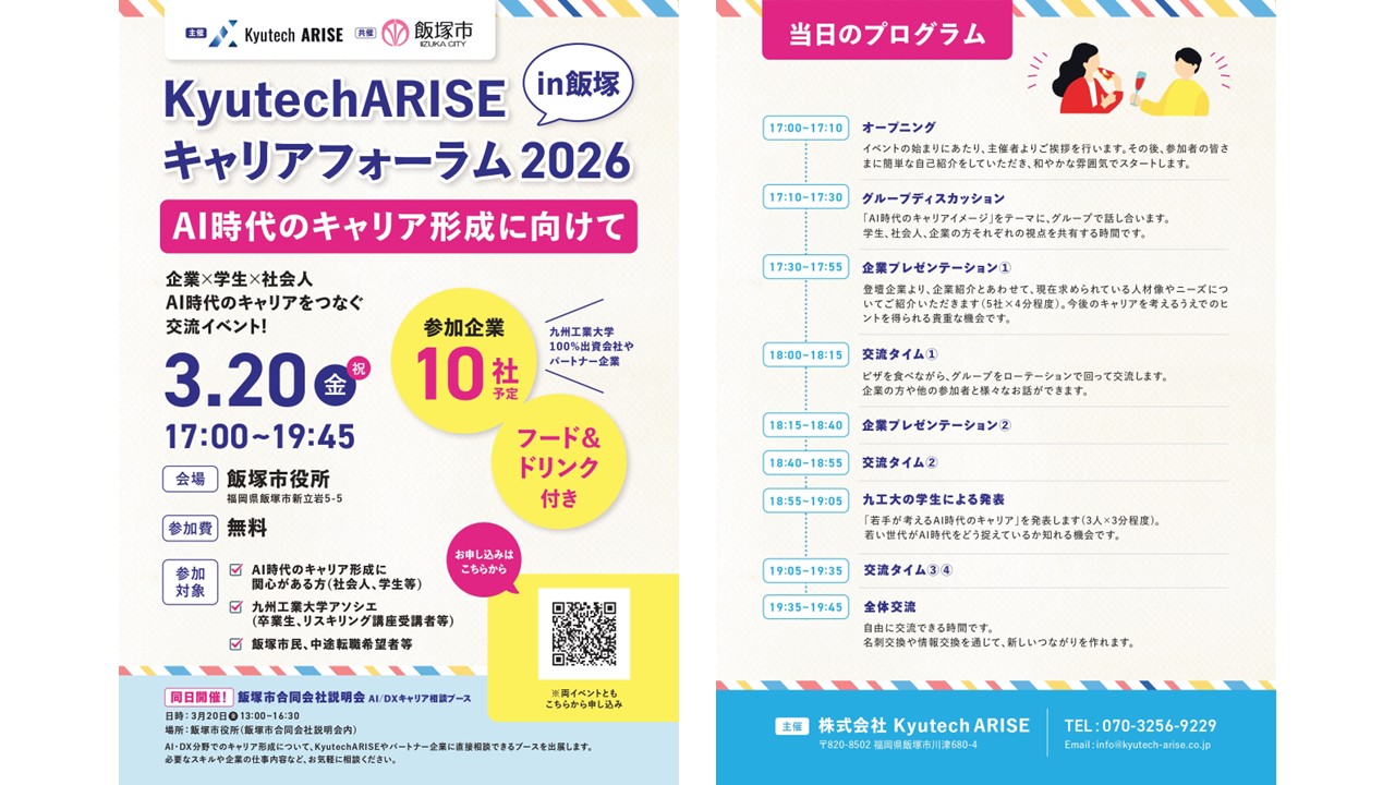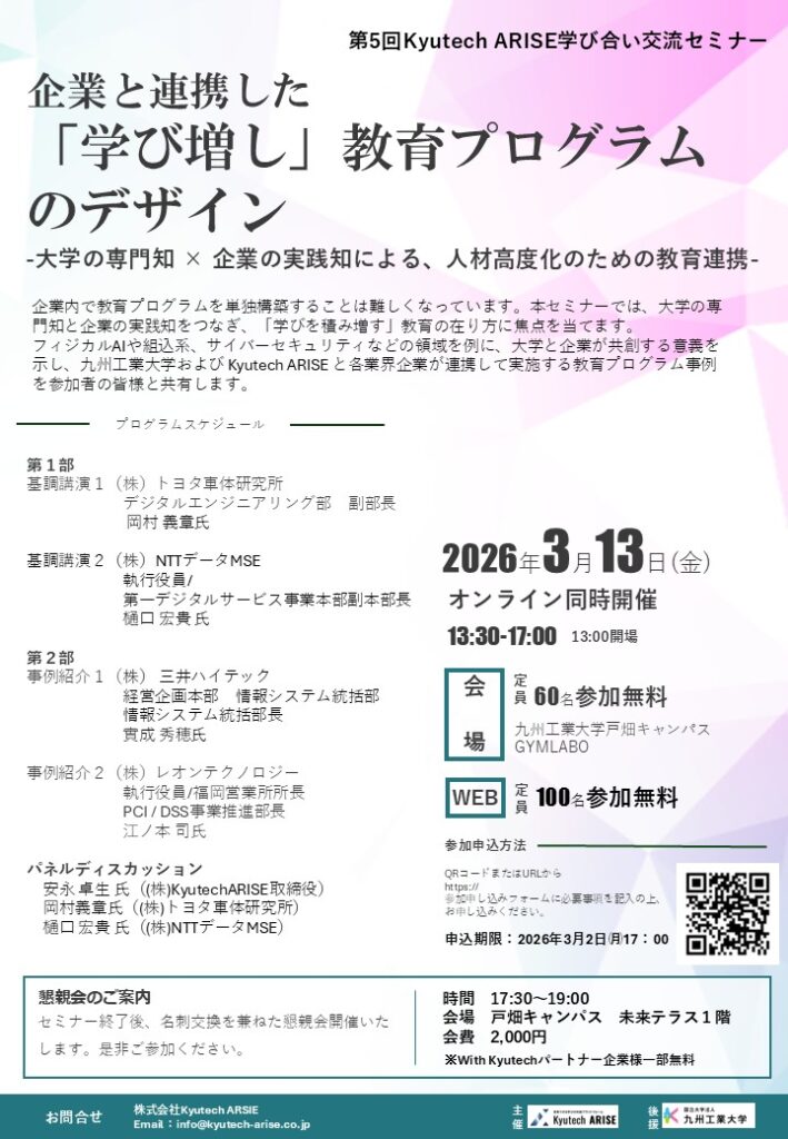 国立大学法人九州工業大学のもつ教育リソースを利活用した、卒業生やエンジニア等の社会人向け リカレント・リスキリング教育および研修、就業支援事業等の生涯学習支援を行うプラットフォーム会社です。